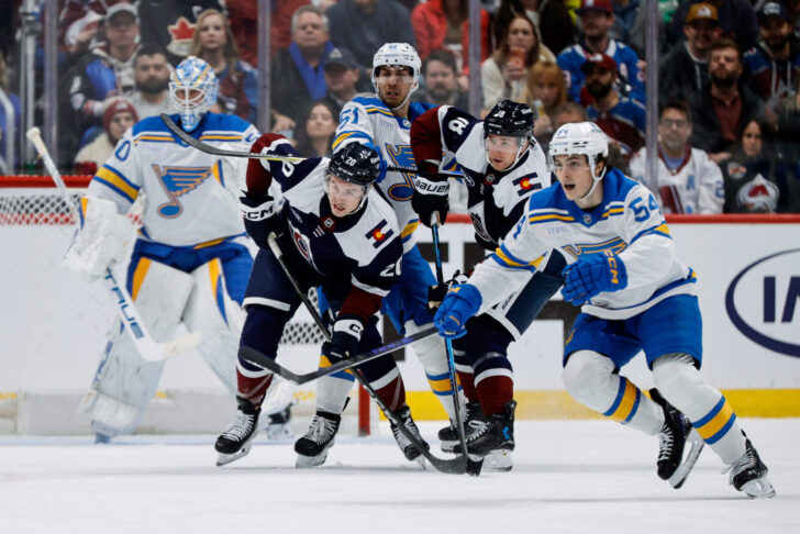 The Colorado Avalanche play in the second leg of a back-to-back by hosting the St. Louis Blues at Ball Arena.